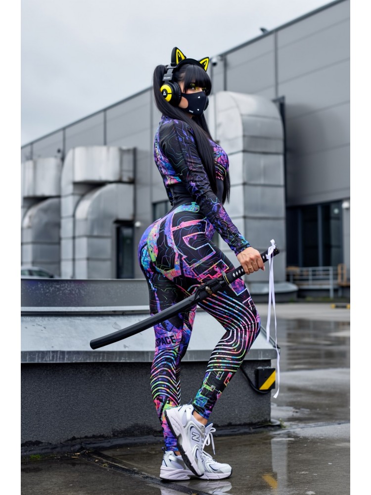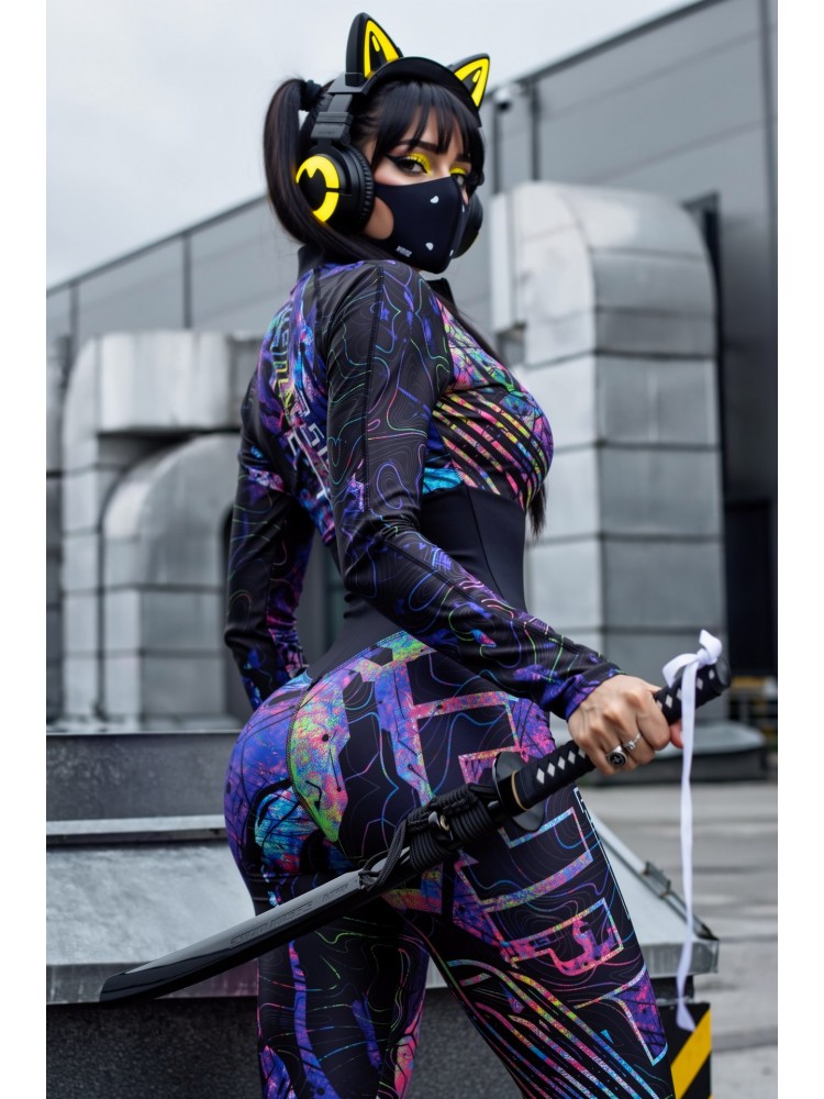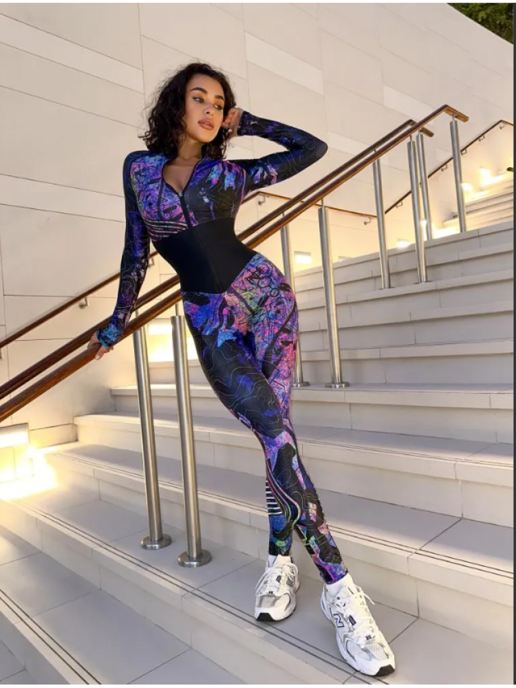 Комбинезон женский спортивный станет незаменимым в гардеробе каждой увлеченной фитнесом девушки. Особо изысканный вид он обретает за счет принта и высокого пояса, выступающего в качестве особого декоративного элемента – корсета. Облегающий комбез выполнен в необычном цвете, что делает его идеальным выбором во время тренировок, чтобы выделиться среди окружающих. Приталенный крой и утягивающий материал акцентируют внимание на формах, подчеркивая естественную красоту вашего тела. Комбинезон для спорта позволит вам свободно двигаться и чувствовать себя уверенно в любой ситуации – от занятий йогой, гимнастики и танцами до повседневных выходов на прогулку или пробежку в летний период. Идеальное сочетание длинного рукава и слитного дизайна позволяет чувствовать комфорт даже во время самых интенсивных тренировок. Приятный к телу материал погружает в состояние легкости, словно вы растворяетесь в движении. Удобная молния позволяет легко надеть и снять этот потрясающий комбез.