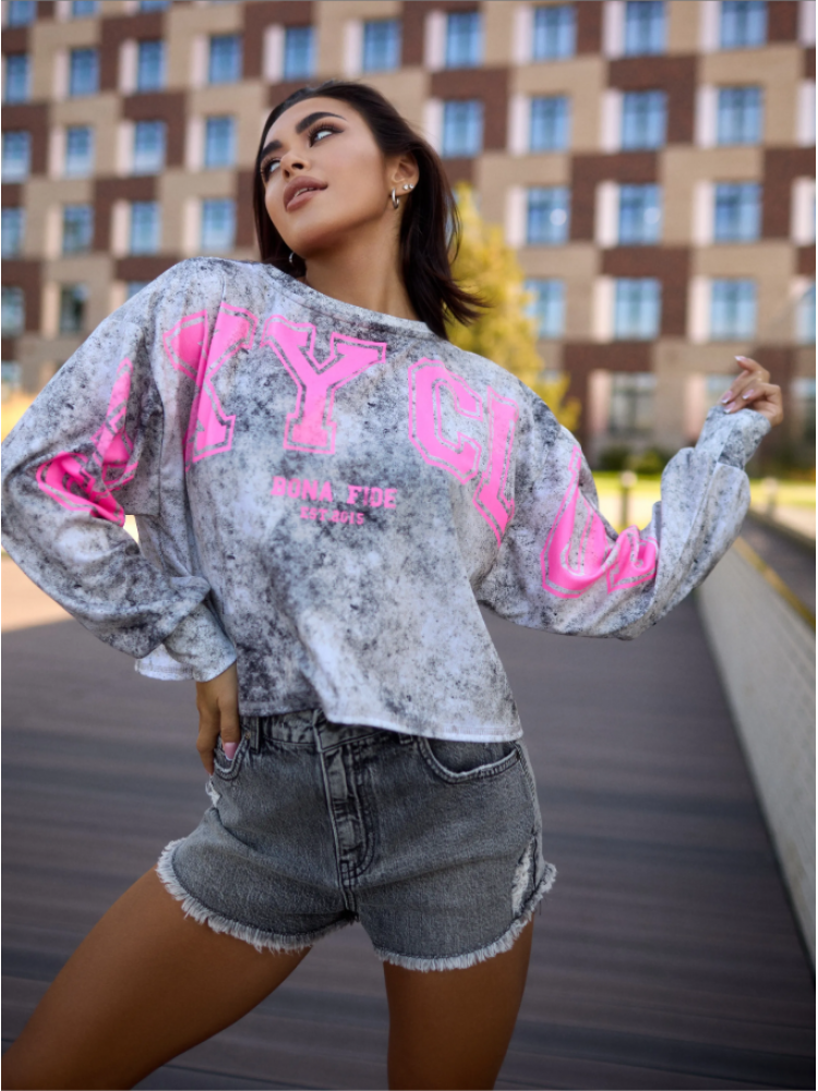 Укороченный рашгард Bona Fide: Oversize Crop Longsleeve "Sexy Club"